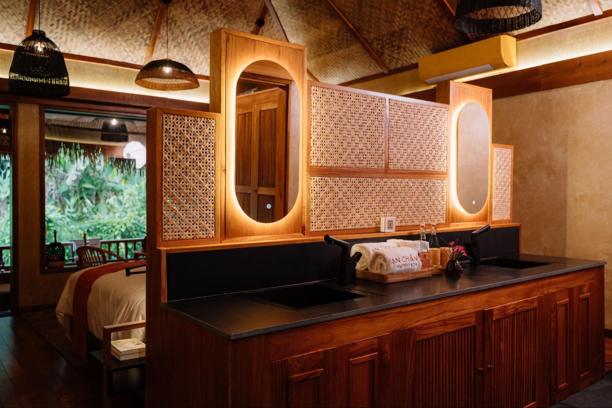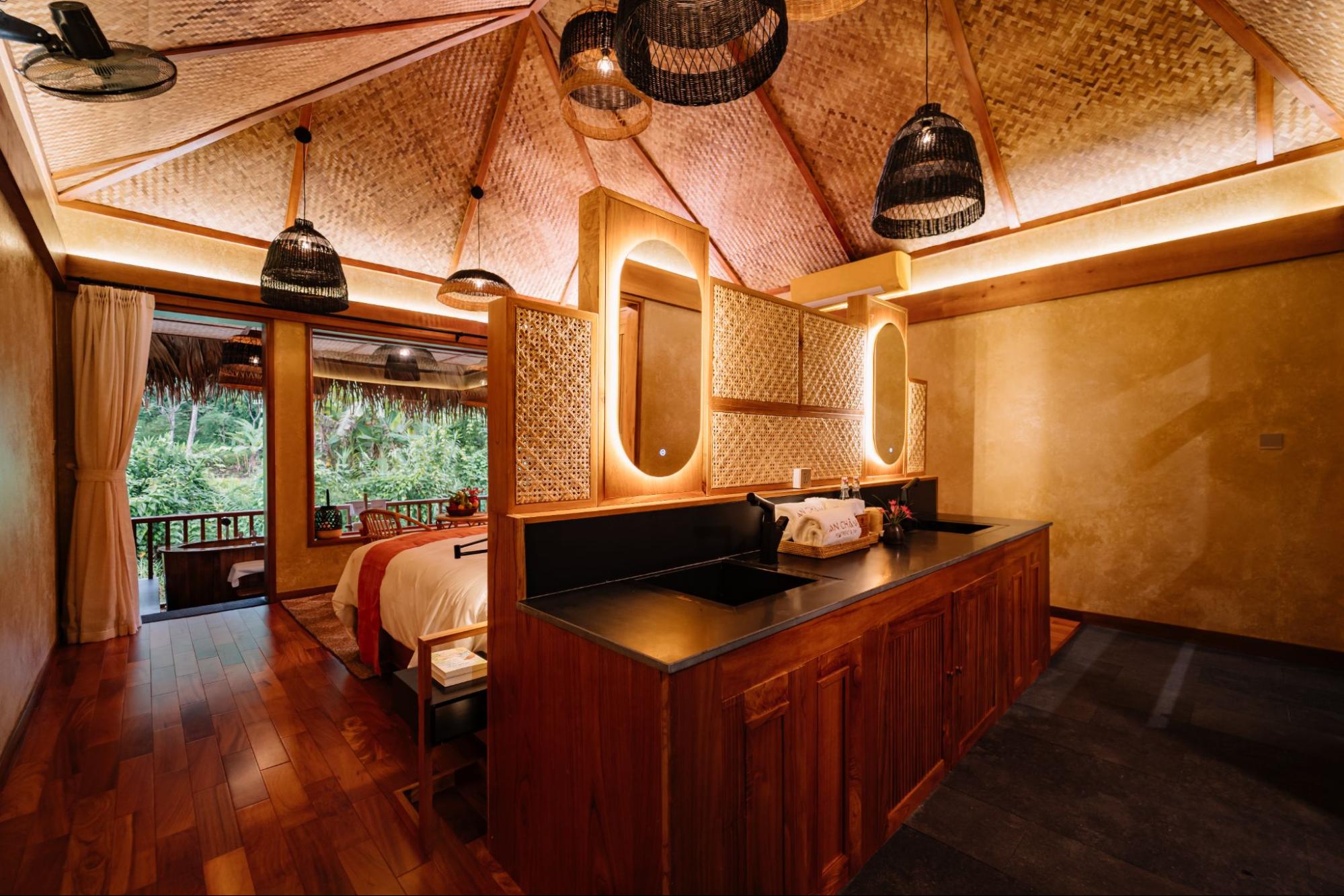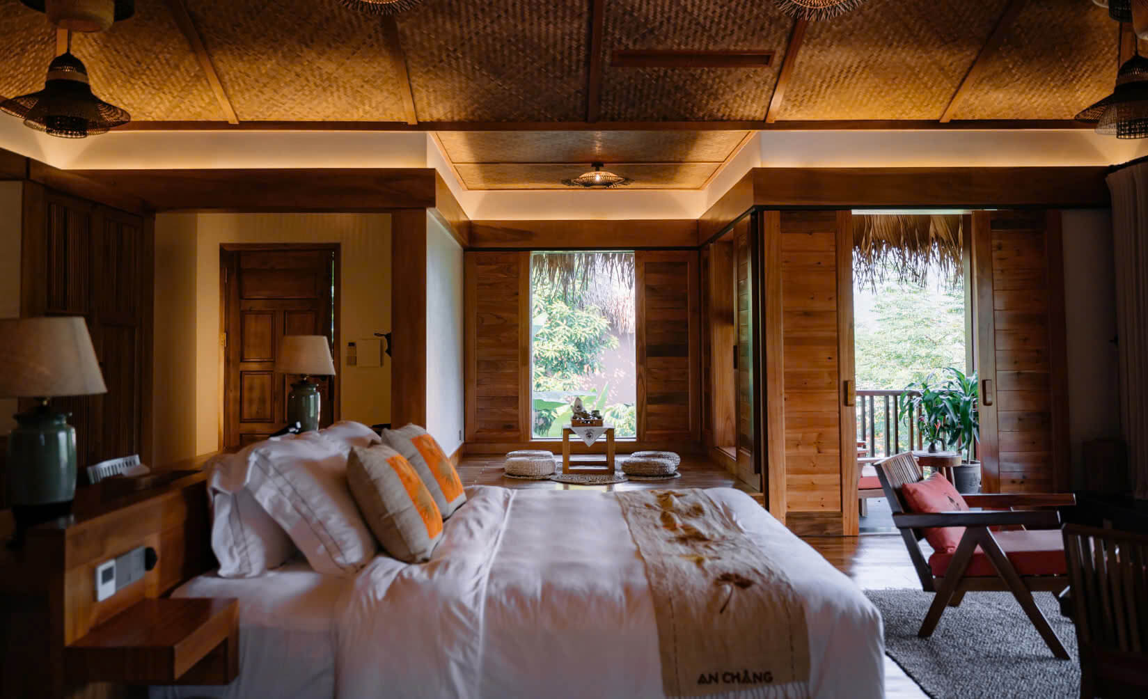 Nestled in pristine nature, each room at An Châng Retreat is a sanctuary of minimalist design, created to expand your sense of tranquility and awaken the stillness within your soul. More than just a place to stay, it is the legacy of local artisans—a creation of skillful hands and hearts that have cherished this land for generations. Every corner breathes the essence of the mountains—rustic yet refined, intimate yet profound. This is a space that doesn't just capture the eye, but touches the deepest part of your being, gently guiding your body, mind, and spirit back to a state of pure, serene wholeness in the embrace of the earth and sky.