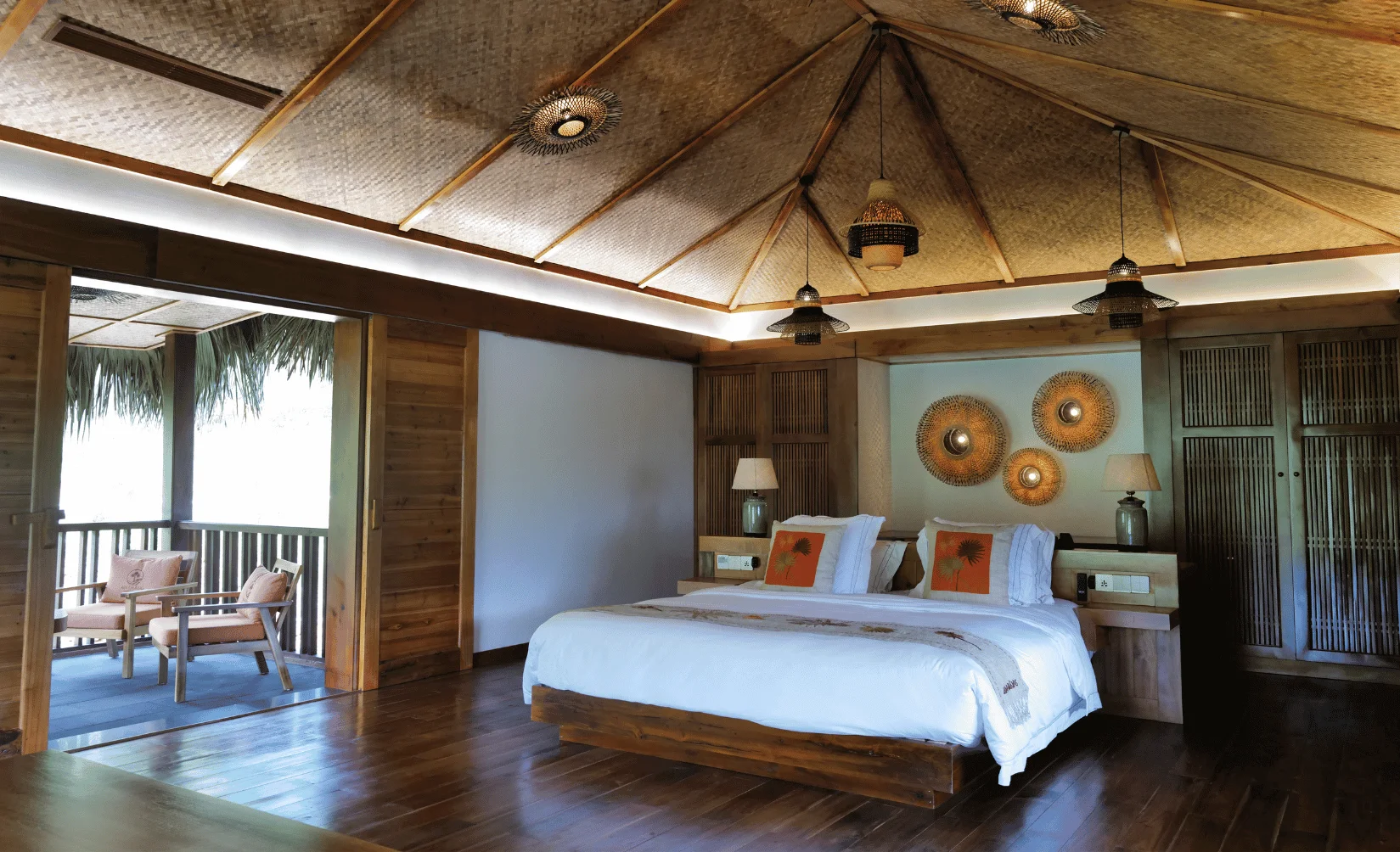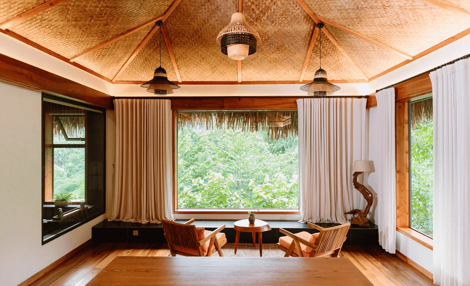 Orchid Majesticview Suite is located at the highest point of the resort, offering 80m² of space designed in harmony with nature to create an ideal atmosphere for relaxation. A charming balcony opens to stunning views of thatched-roof houses and lush green hills, bringing a sense of peace. The room's furnishings and décor are carefully selected and elegantly integrated with the overall design, offering both luxury and comfort. The private bathroom features a natural stone soaking tub, delivering a wonderfully relaxing experience. A private balcony allows you to enjoy serene moments amidst the beauty of nature.