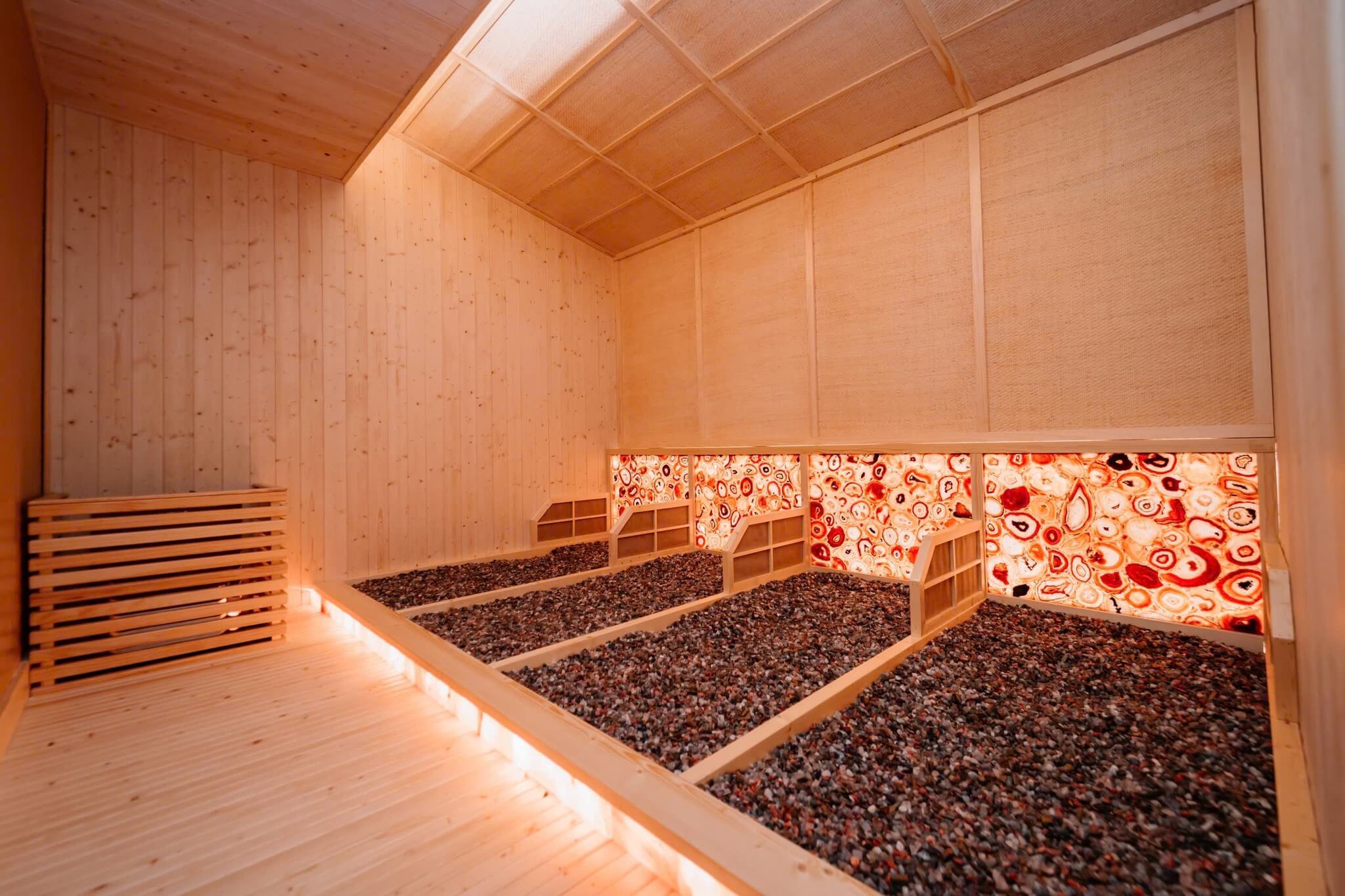 Designed in the traditional Korean style, our Jjimjilbang sauna rooms—featuring a Himalayan Salt Rock room and a Gemstone room—use pure, natural materials to deliver profound wellness benefits. This experience helps to relax muscles, improve circulation, eliminate toxins, and slow the body's aging process.